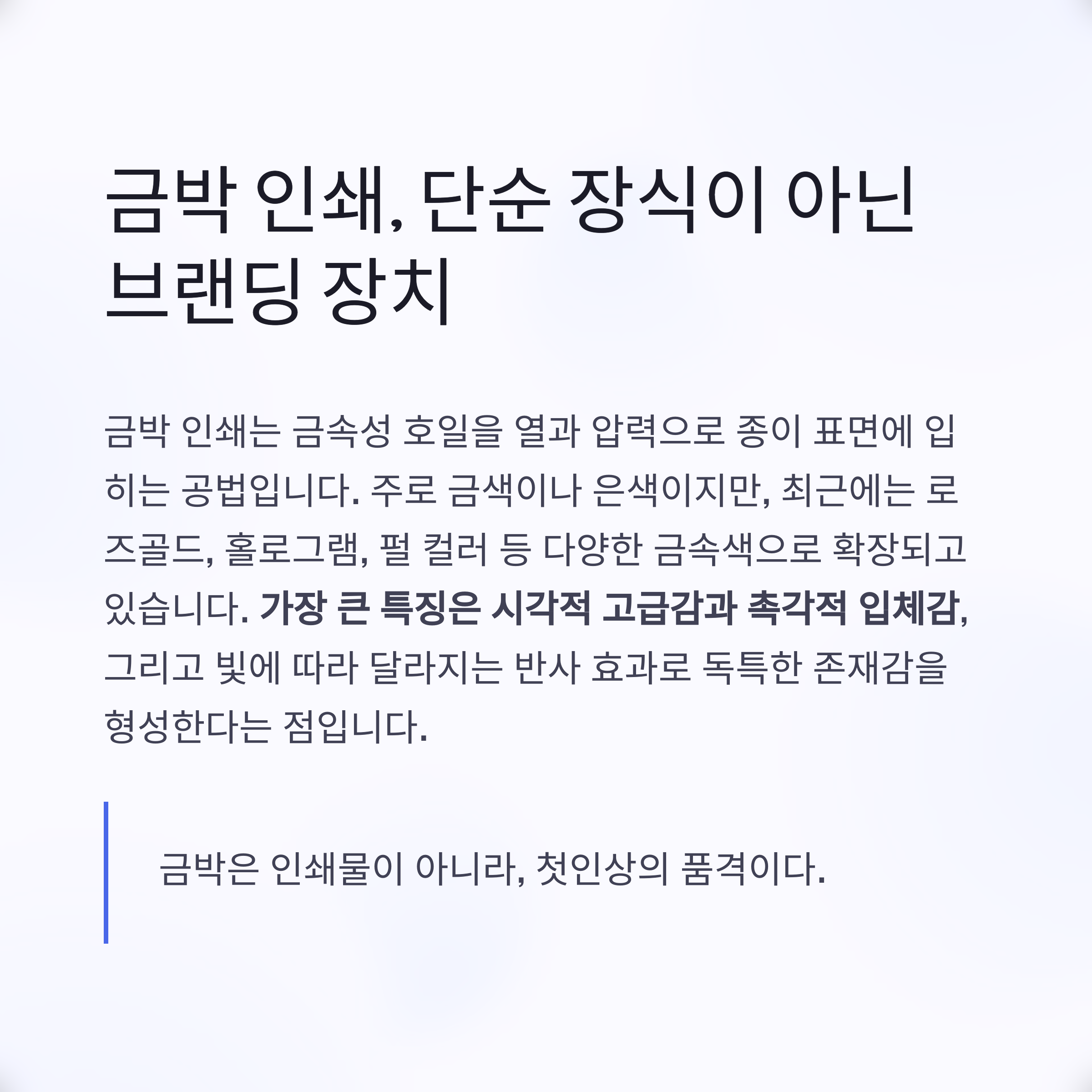 “금박은 인쇄물이 아니라, 첫인상의 품격이다.”