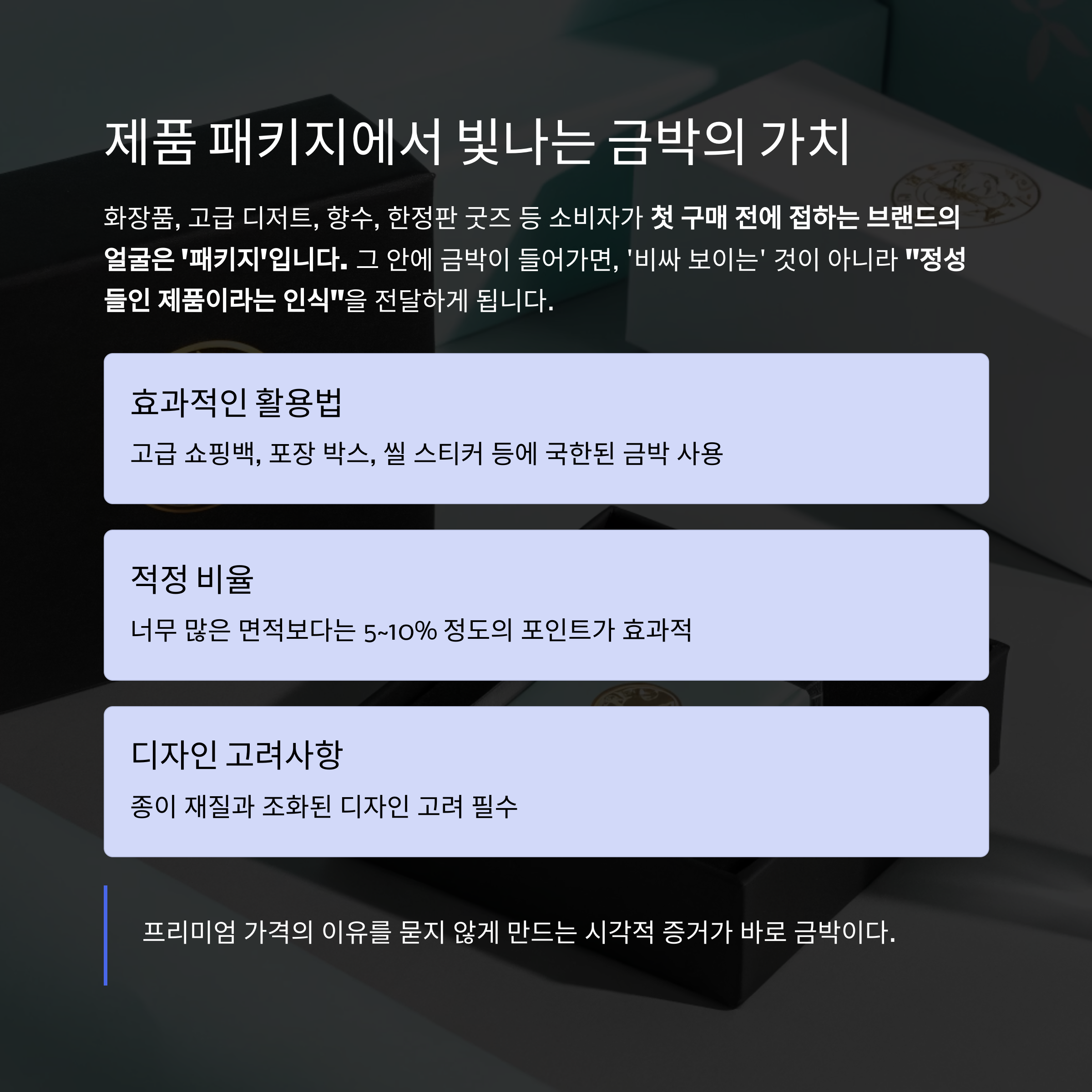 “프리미엄 가격의 이유를 묻지 않게 만드는 시각적 증거가 바로 금박이다.”