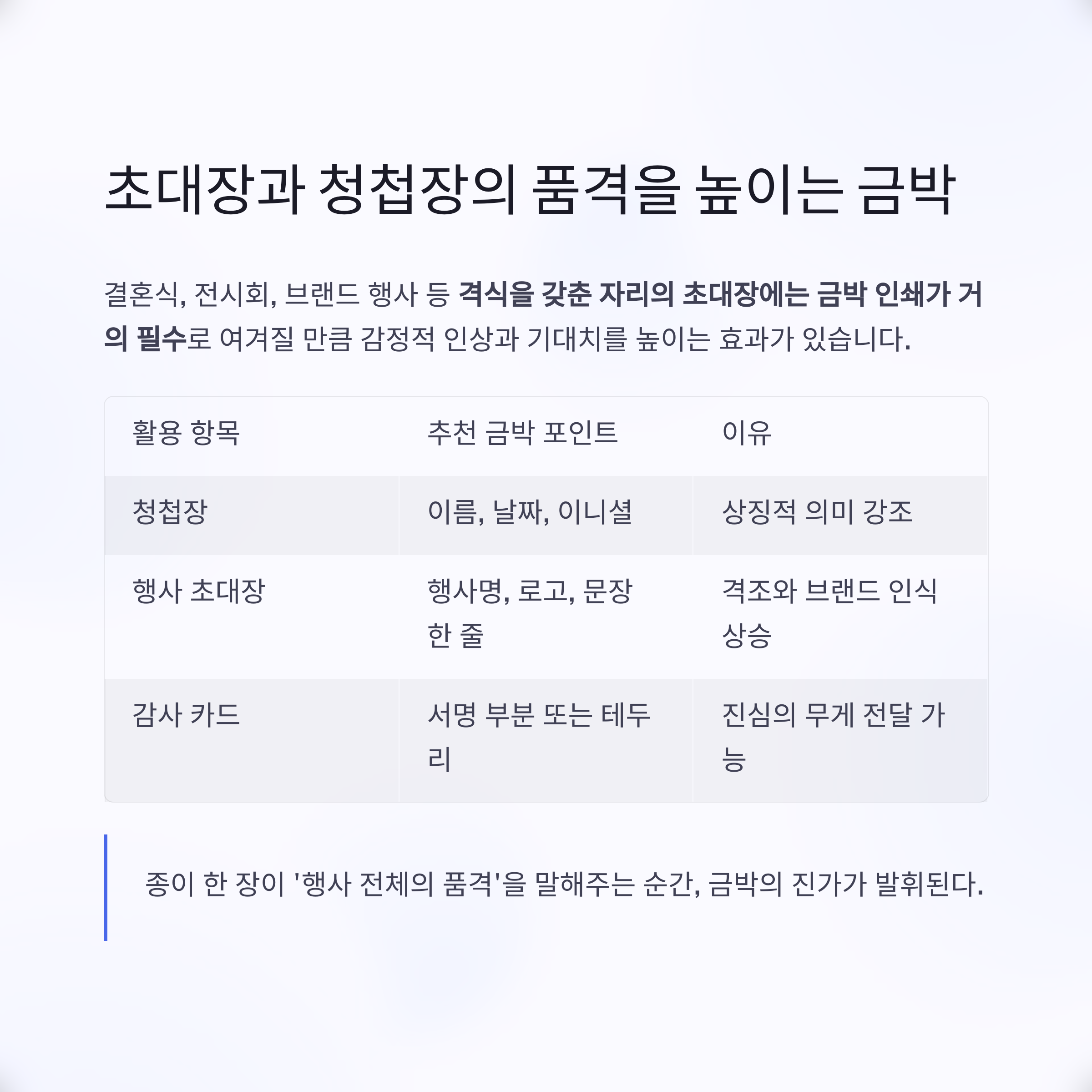 “종이 한 장이 ‘행사 전체의 품격’을 말해주는 순간, 금박의 진가가 발휘된다.”