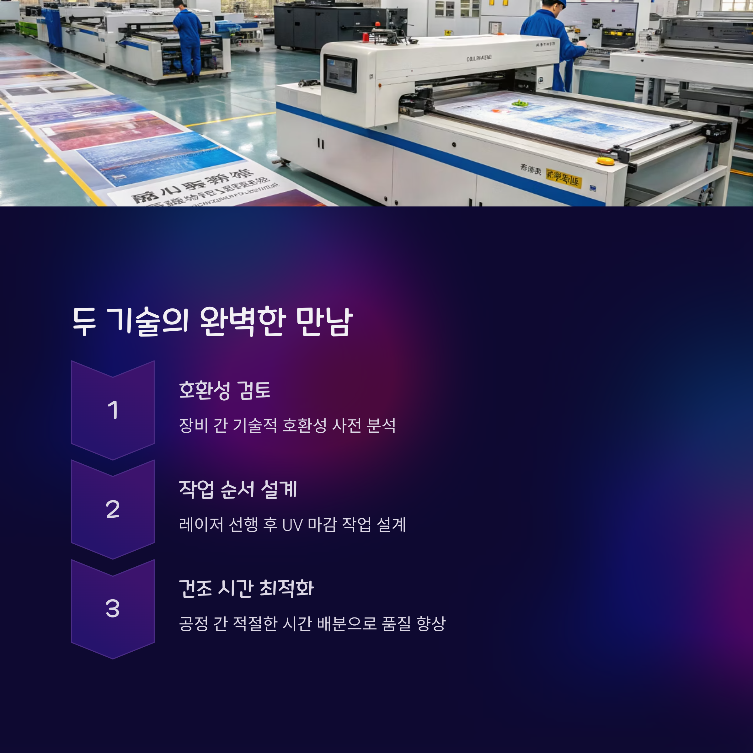 | 고급 인쇄물일수록 품질 차이가 드러납니다. | 디자인 단계에서부터 병행 여부 고려가 필요합니다. | 장비 간 간섭 요소나 정렬 문제도 고려해야 합니다. |