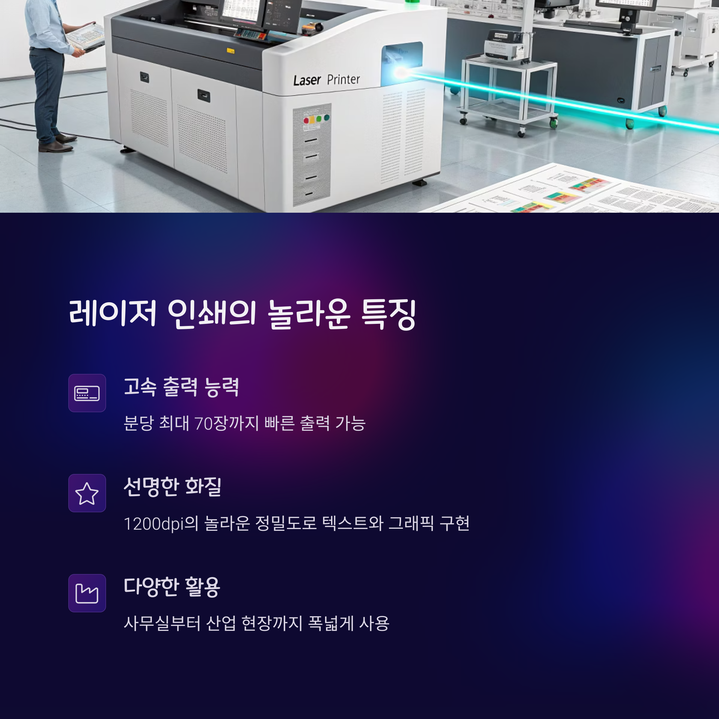 | 레이저 인쇄 | 열을 이용한 토너 전사 방식으로 선명한 출력 제공 |