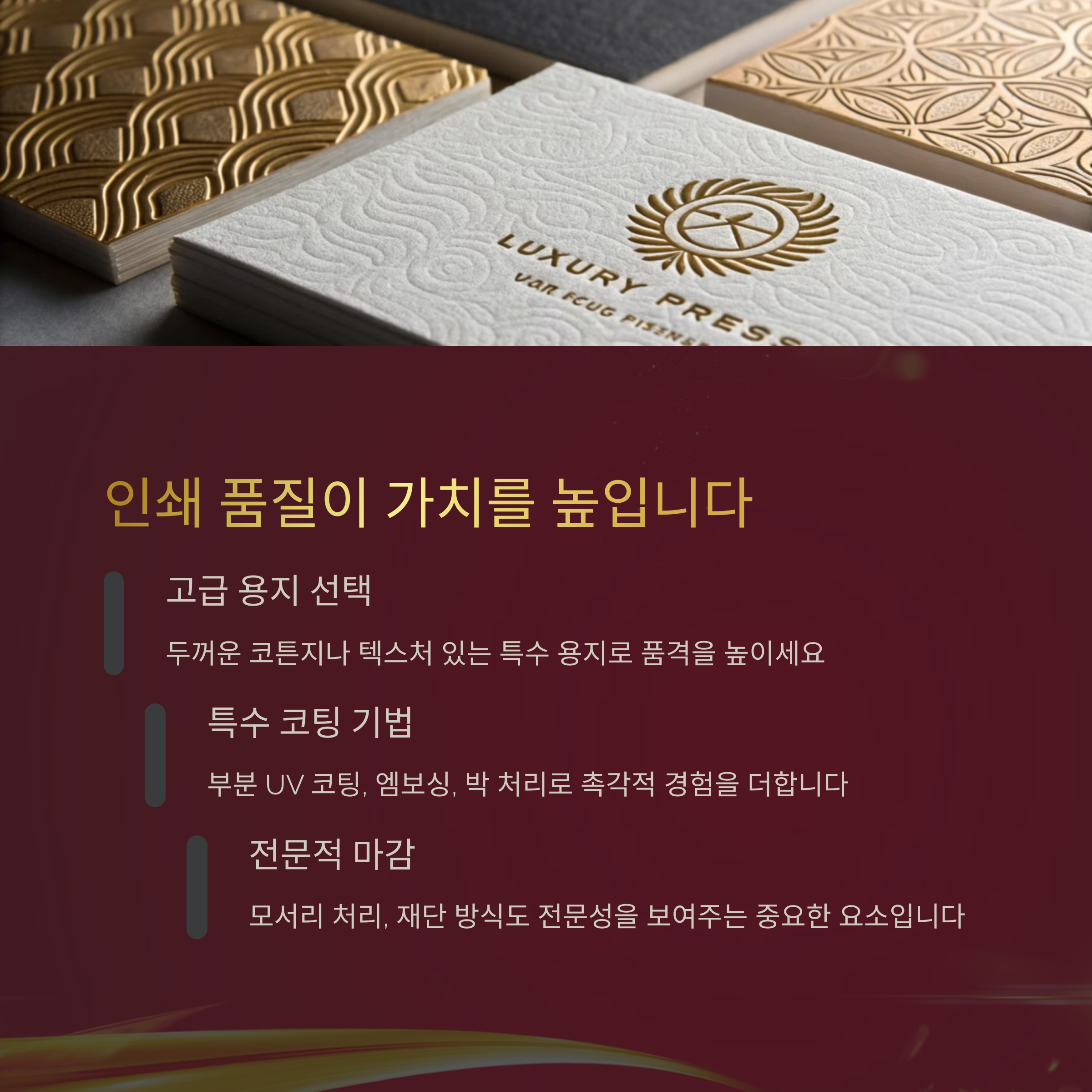 | 인쇄 품질 선택 | 종이 재질과 마감 방식에 따라 신뢰도가 달라집니다. |