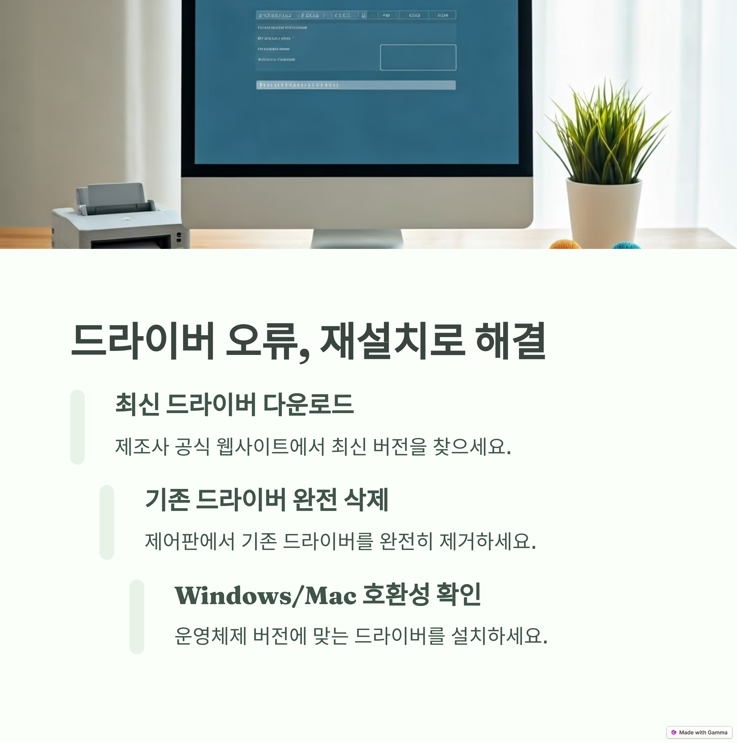 | 드라이버 이상 | 드라이버 재설치만으로도 해결될 수 있어요. |