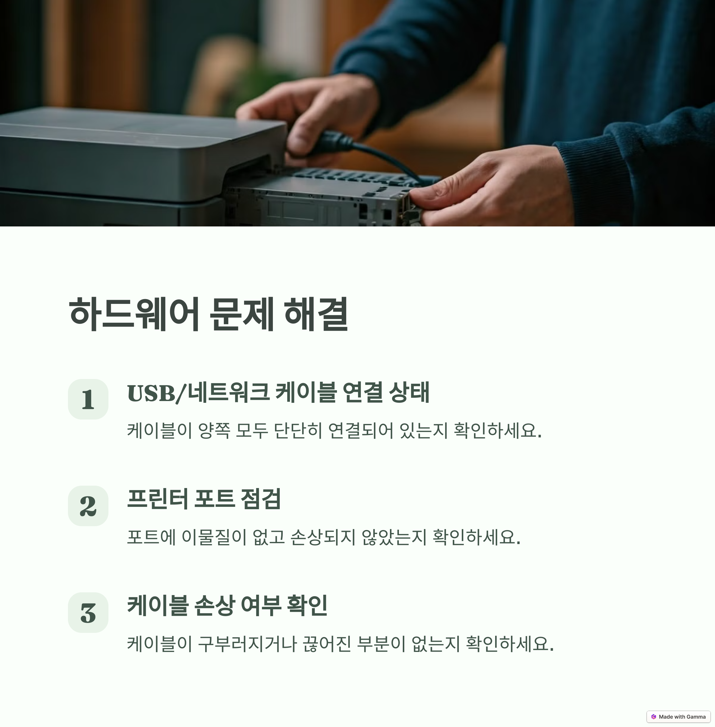 두 번째로 점검해야 할 항목은 프린터 드라이버입니다. 업데이트 오류나 파일 손상으로 인해 시스템이 프린터를 제대로 인식하지 못하는 경우가 종종 있습니다. 제조사 공식 홈페이지에서 해당 모델의 최신 드라이버를 다시 설치하거나, 장치 관리자에서 기존 드라이버를 제거한 뒤 재설치를 시도해보세요. 간단한 조치로 인쇄 오류가 말끔히 해결될 수 있습니다.