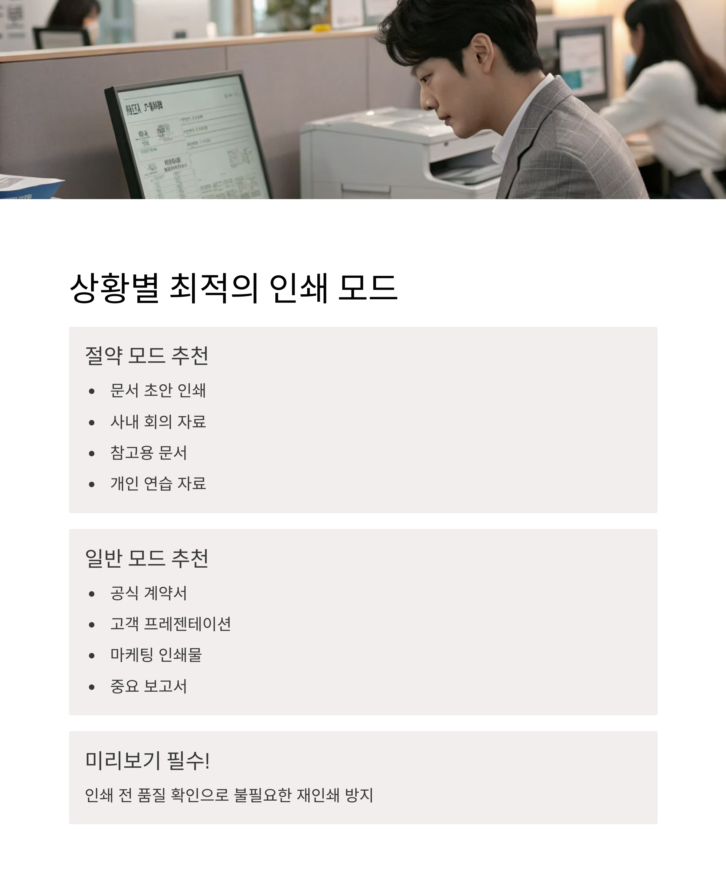 | 상황 | 권장 인쇄 모드 |