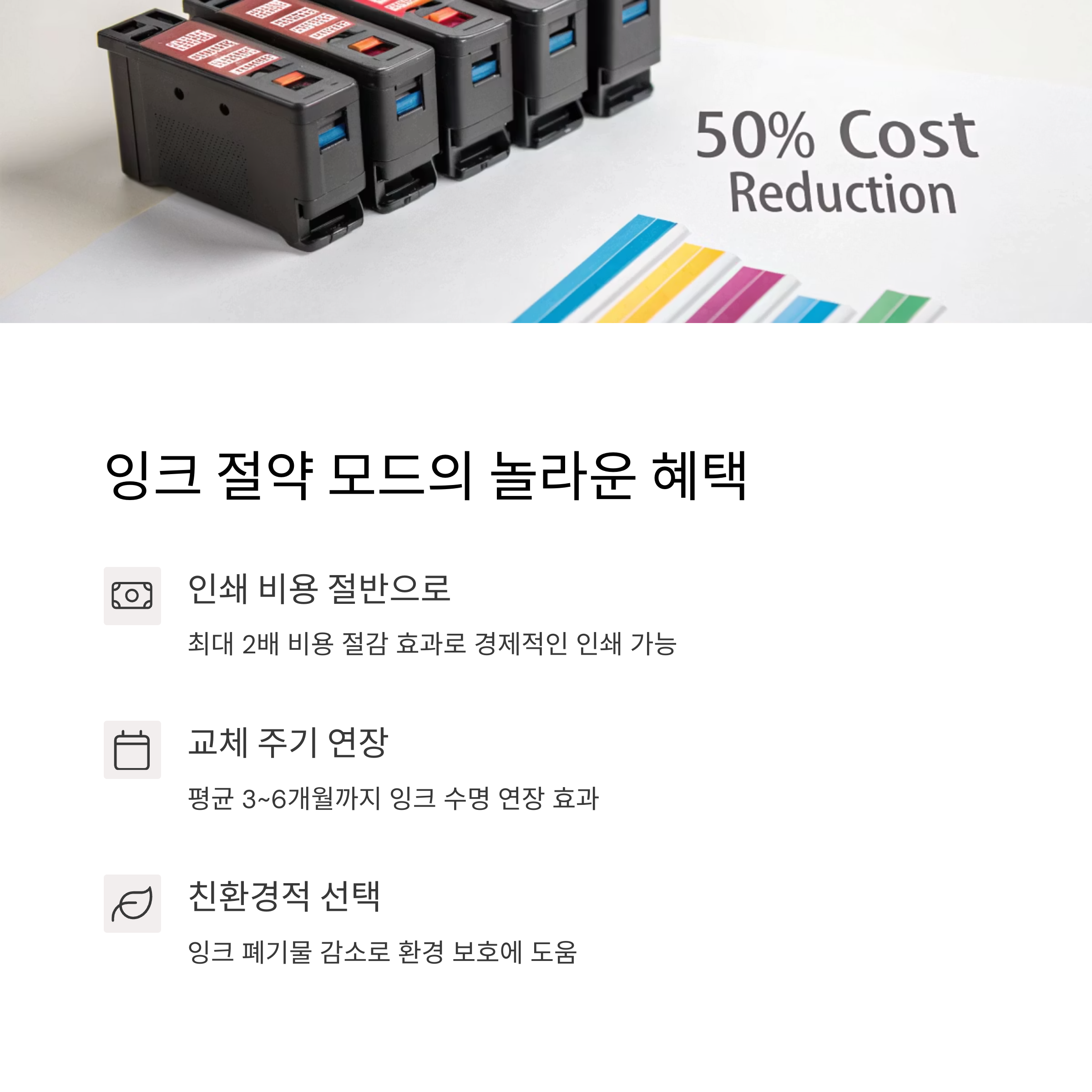 - 잉크 절약 모드: 평균 30% 이상 절약