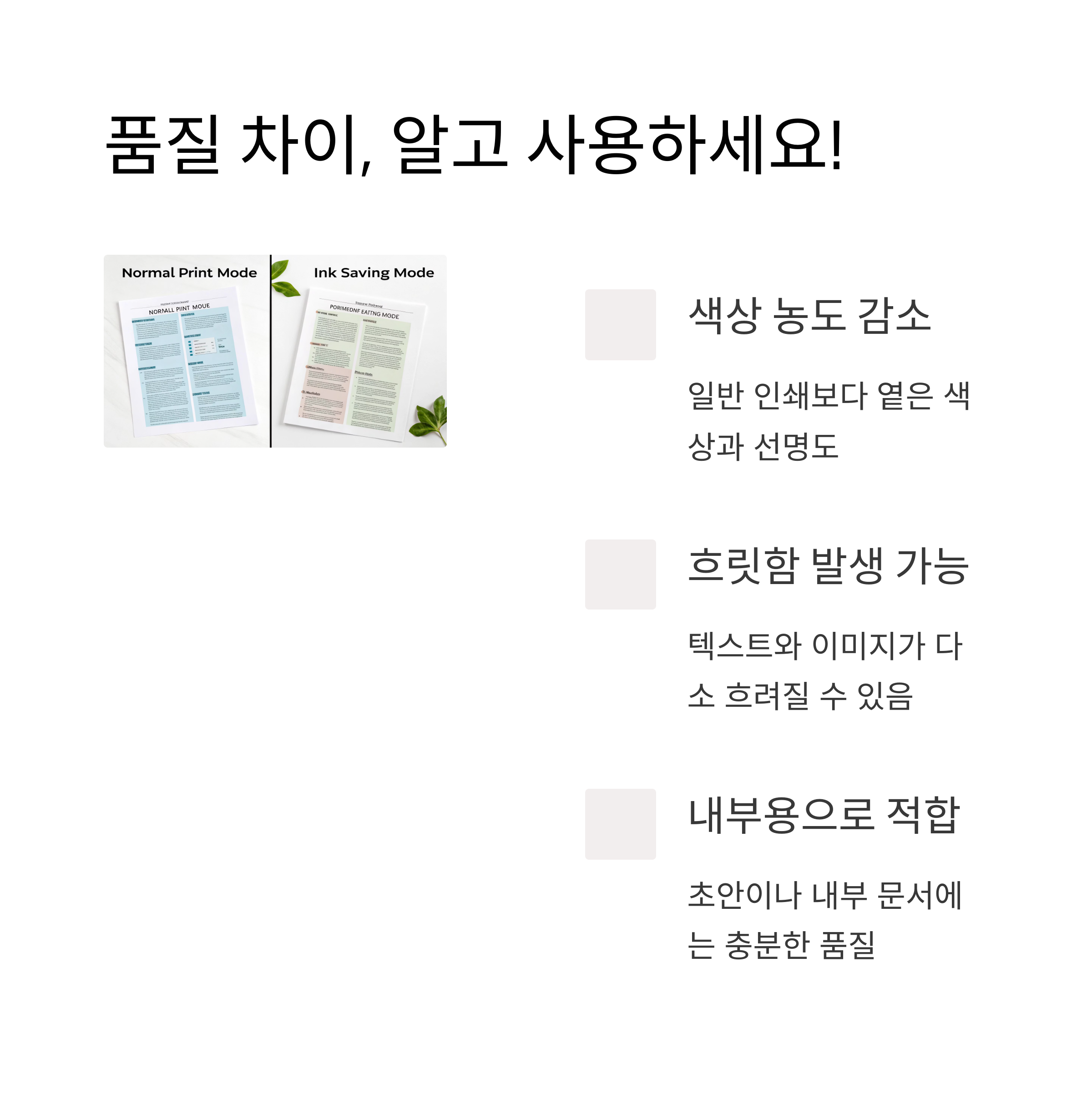 잉크 절약 모드와 일반 인쇄의 주요 차이점