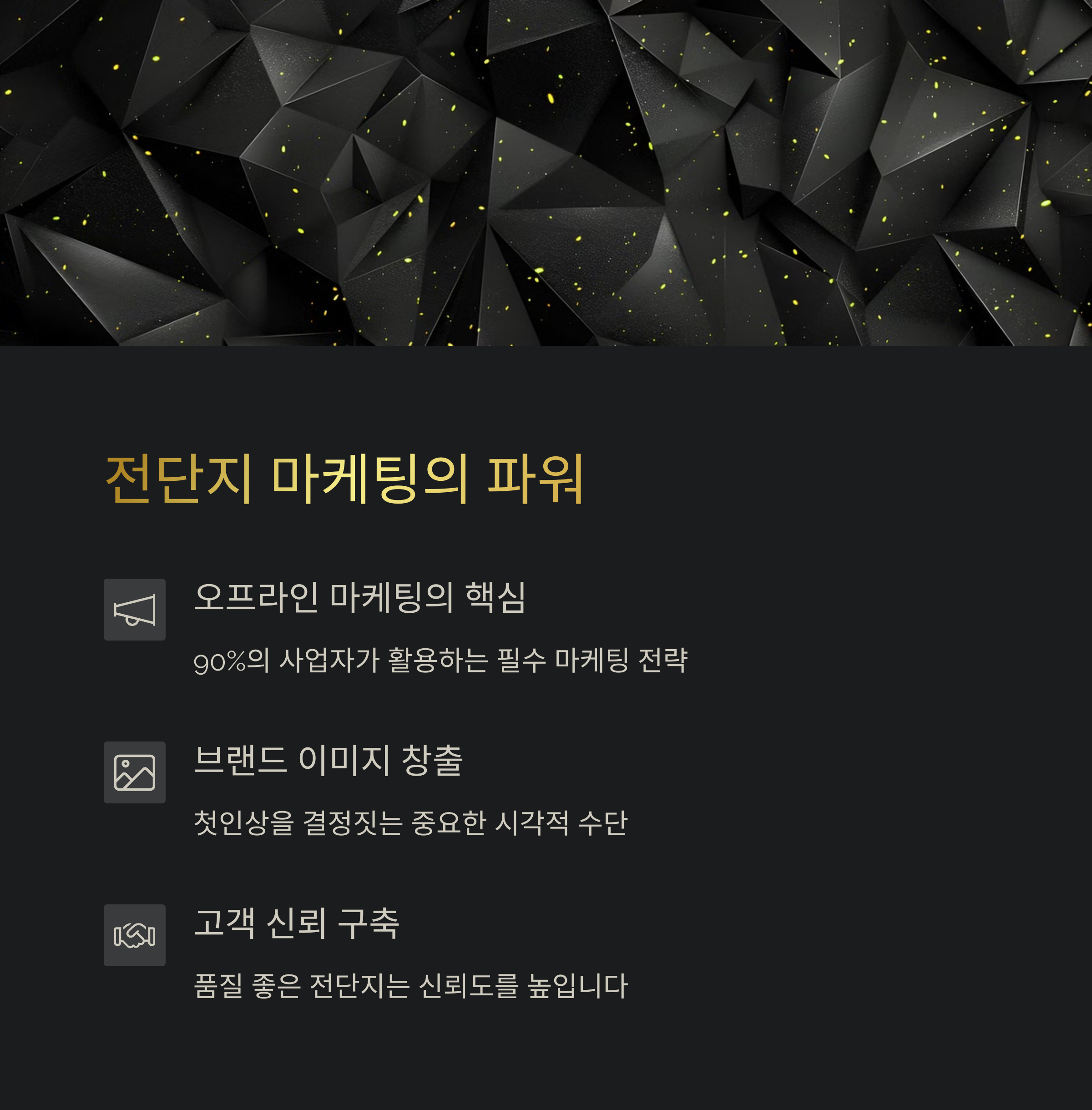 | 전단지 품질 | 인쇄 품질은 마케팅 효과를 좌우합니다. |