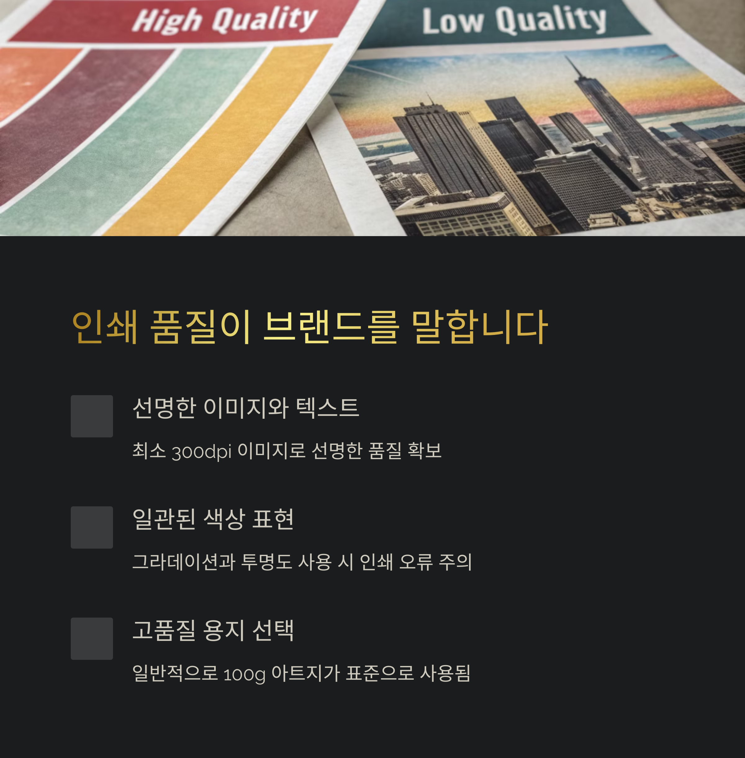 | 종이 재질과 색감, 마감 상태를 꼭 확인하세요. | 약속 시간 내 배송이 가능한지 체크하세요. | 후기 많은 업체를 중심으로 비교해 보세요. |