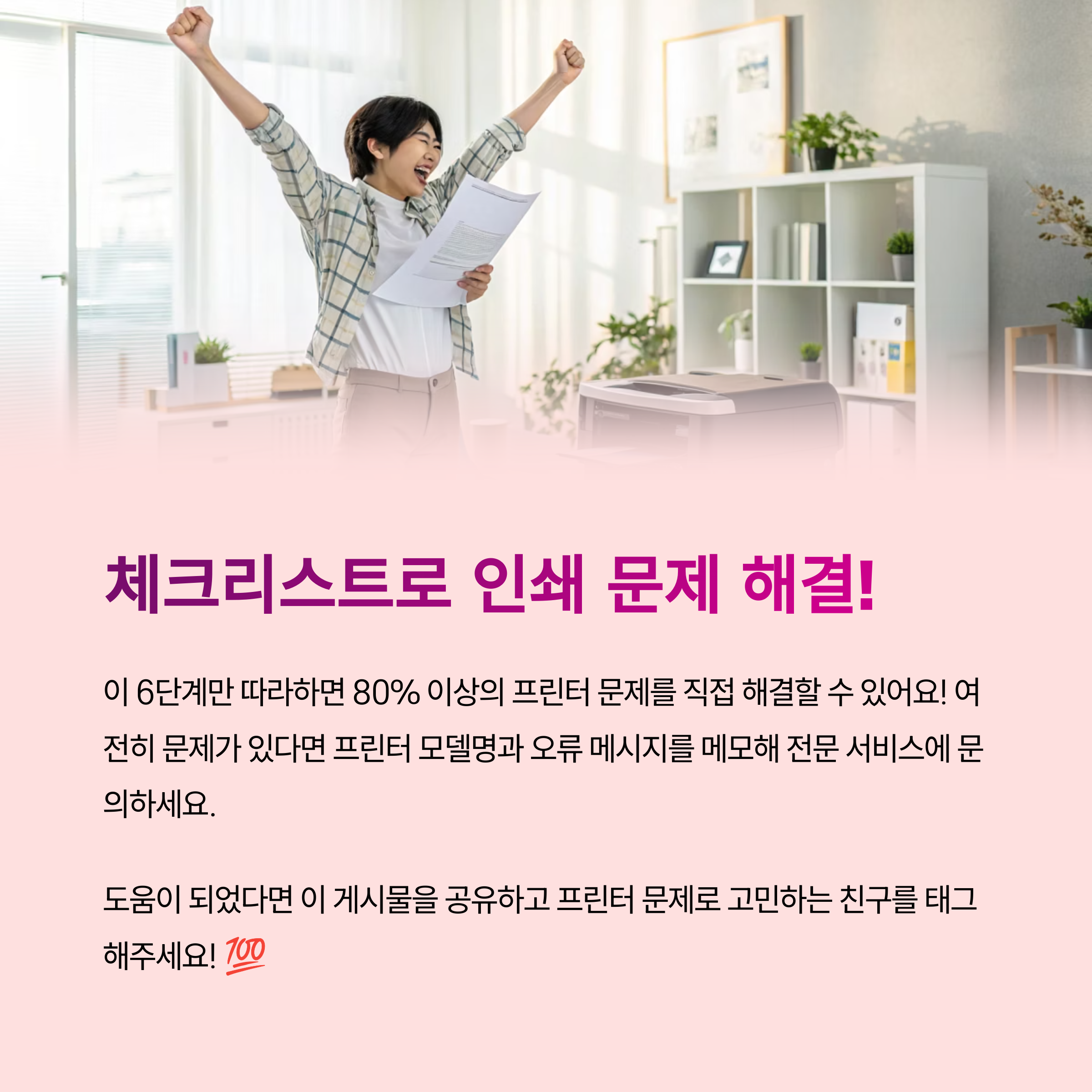갑자기 인쇄가 안돼서 당황하셨나요? 이 체크리스트 하나면 대부분의 프린터 문제, 직접 해결할 수 있어요!