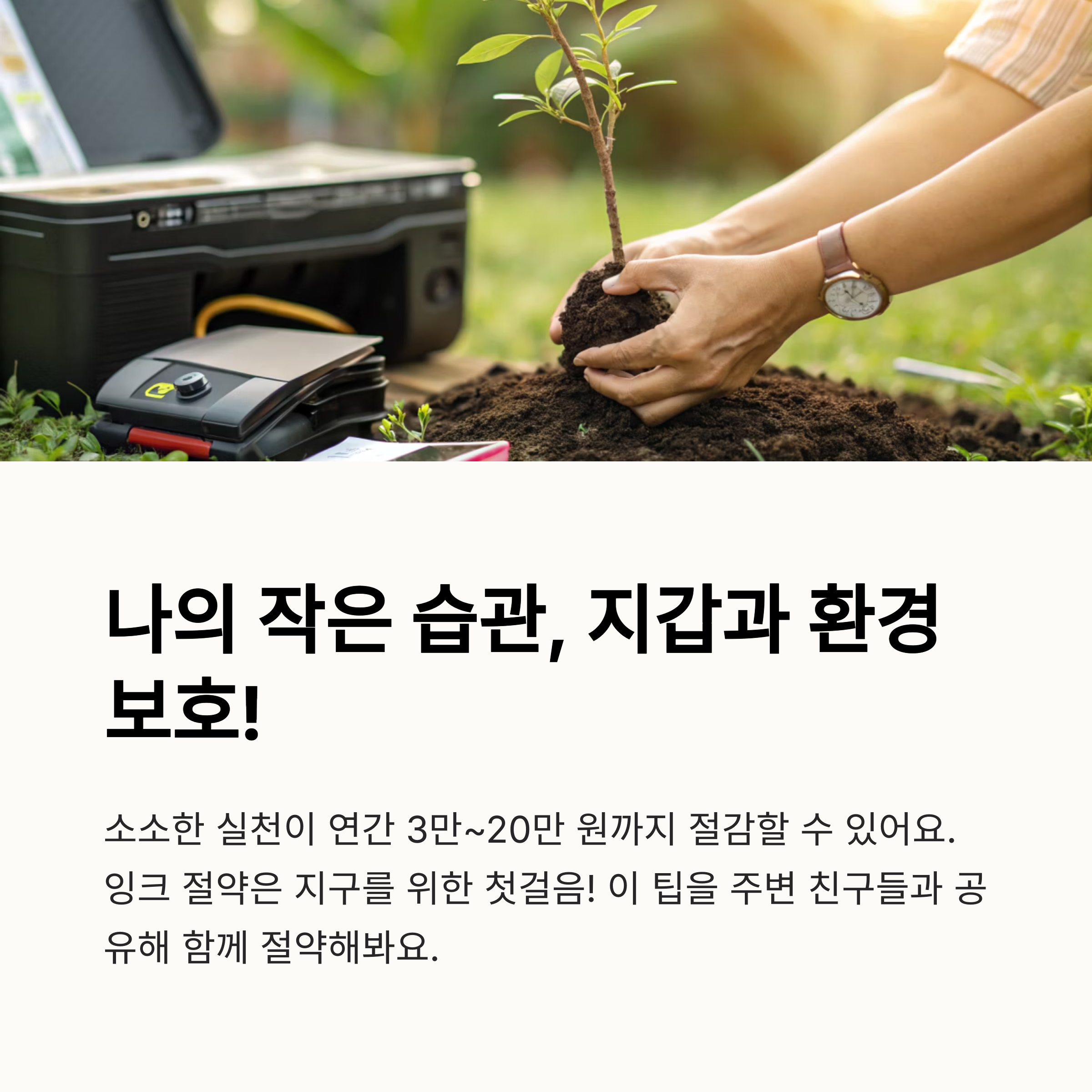 오늘 소개한 프린터 잉크 절약 꿀팁들, 어떠셨나요? 저도 예전엔 무작정 출력부터 했었는데, 이제는 설정 한 번 확인하는 게 습관이 됐어요. 잉크는 물론, 종이도 아끼고 프린터 수명도 늘릴 수 있으니 일석삼조! 여러분도 오늘부터 똑똑한 인쇄 습관으로 경제적이고 친환경적인 하루를 시작해보세요. 댓글로 여러분만의 절약 꿀팁도 공유해주시면 정말 감사하겠습니다 :)